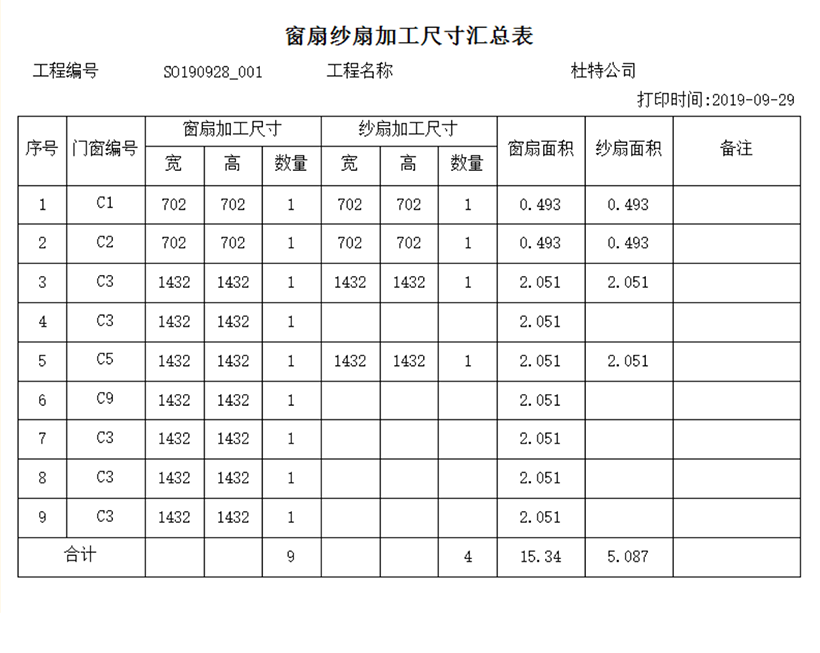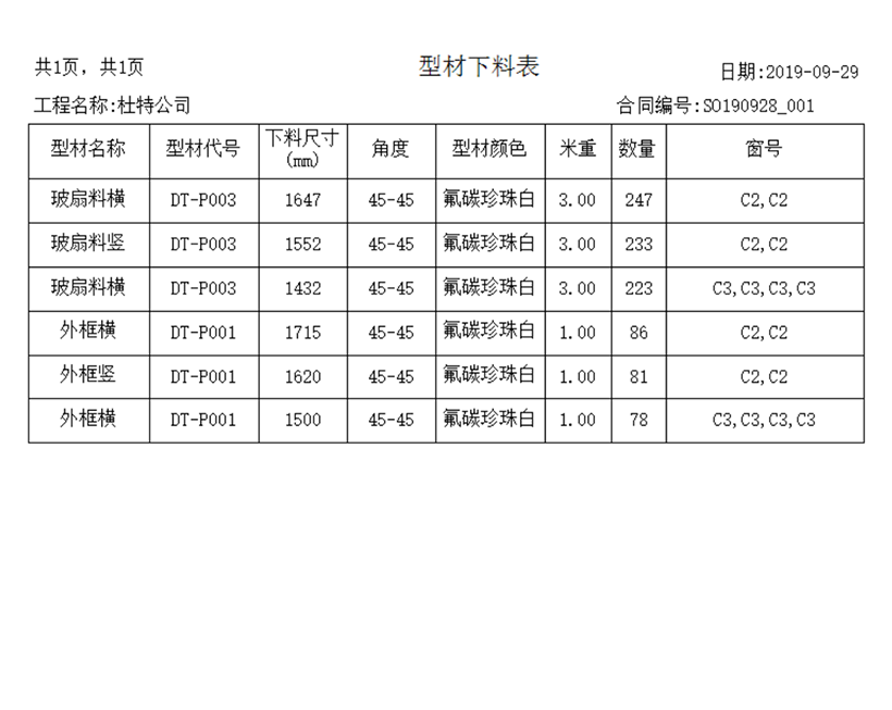 下單大樣圖報表、匯總 表、成本報表、出材率、 玻璃報表等一鍵生成