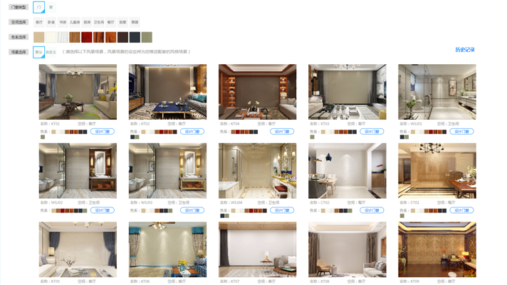多種場景選擇:客廳、臥室、廚房等,可以通過空間、色系、場景來選擇、為您推送配套的風(fēng)格場景、也可自己上傳現(xiàn)場實拍場景圖